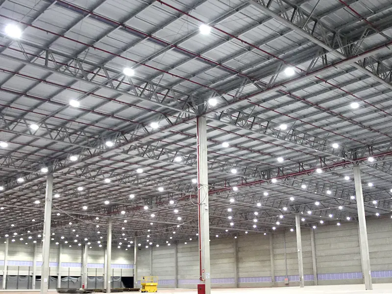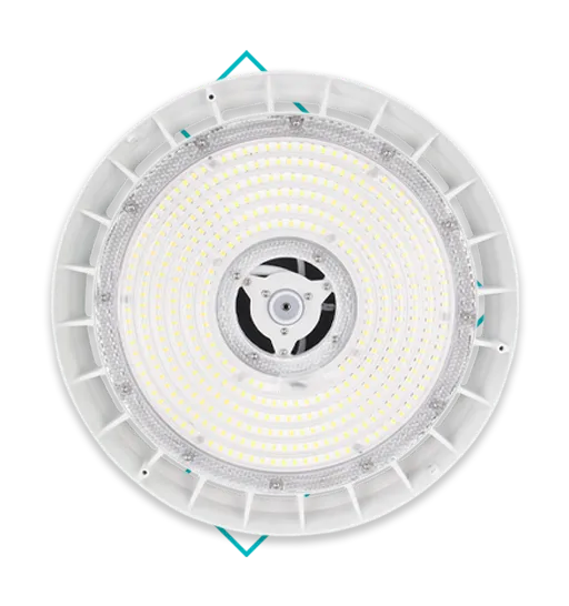 Alta performance e alta eficiência para galpões e áreas industriais. Luminárias bivolt e dimerizáveis por padrão de fábrica.